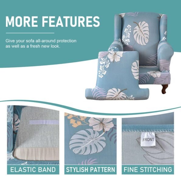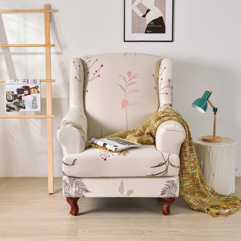 2 Pieces Stretch Pattern Wingback Chair Cover