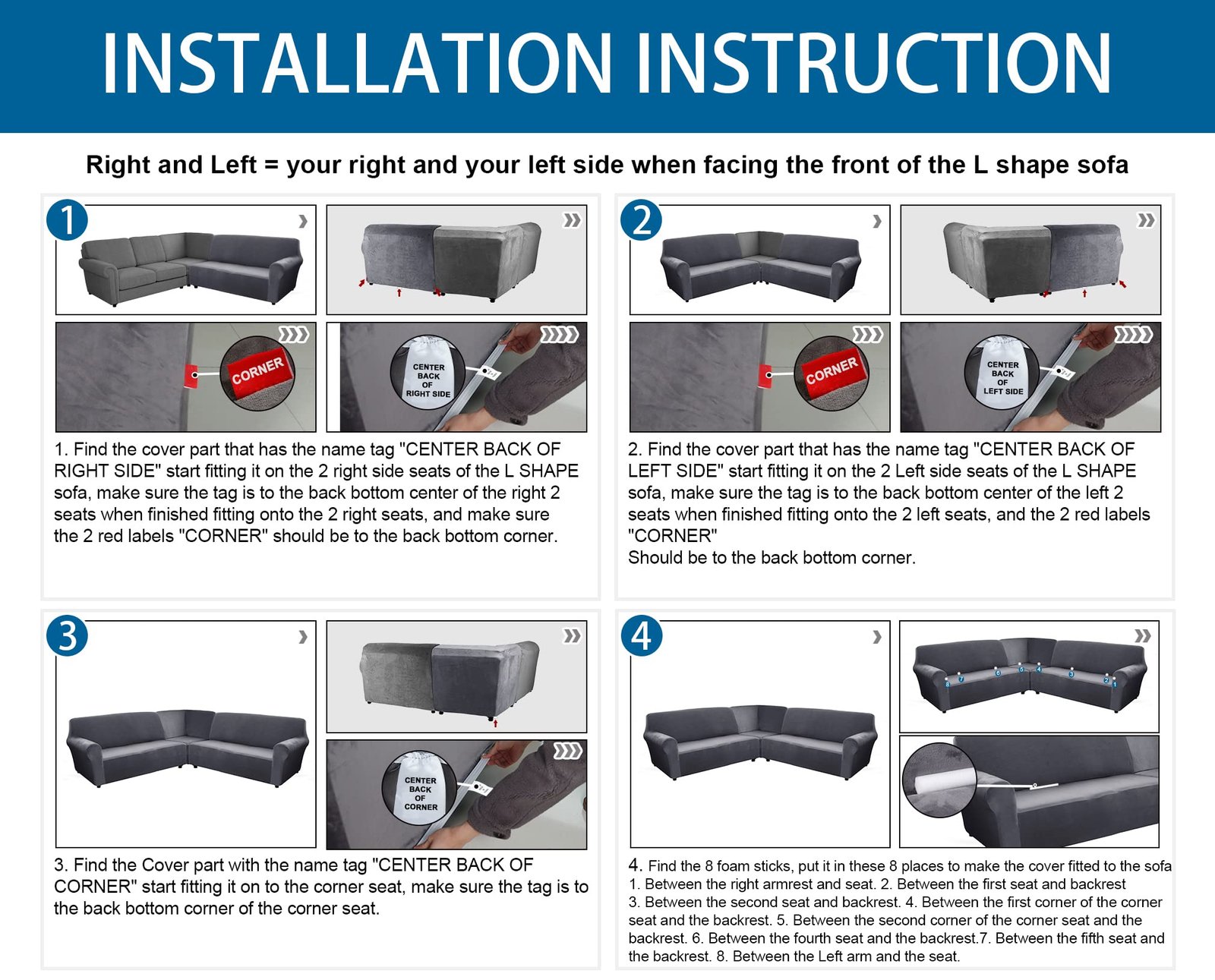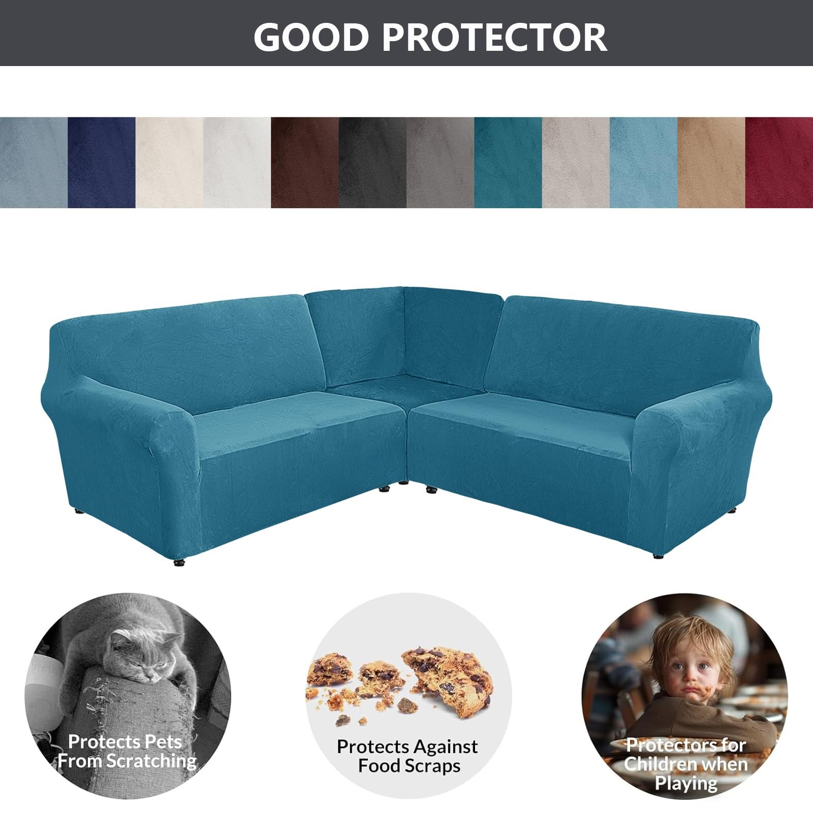 3-Piece Velvet L/U Shaped Sofa Covers With Corner Covers