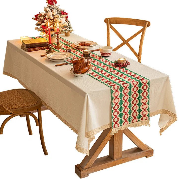 Christmas Table Runner Natural Cotton Knitted Tablecloth