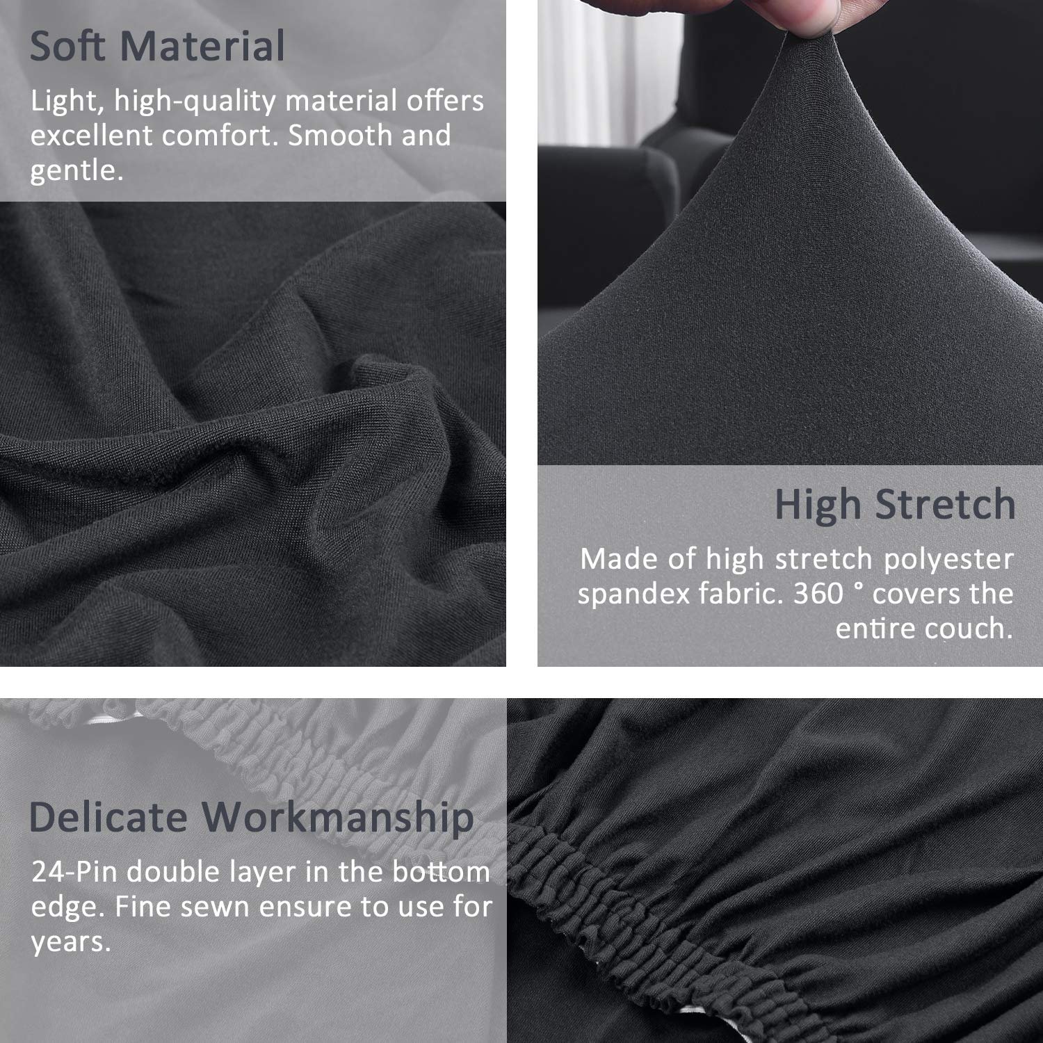 Non-slip L-Shaped Sectional Couch Covers Dark Grey