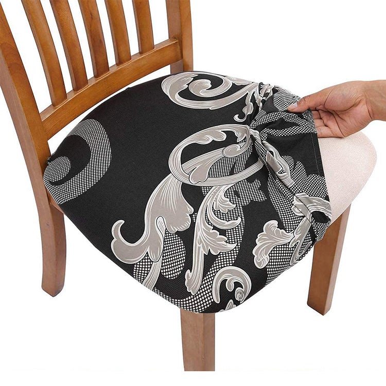 Pattern Stretchable Dining Chair Seat Cover Black Wave